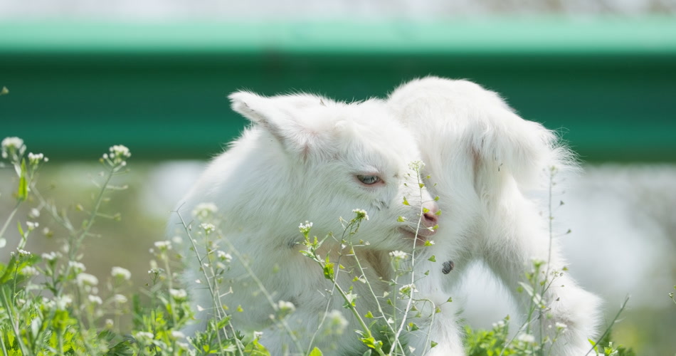 春天小山羊羔打理羽毛动物畜牧业绵羊