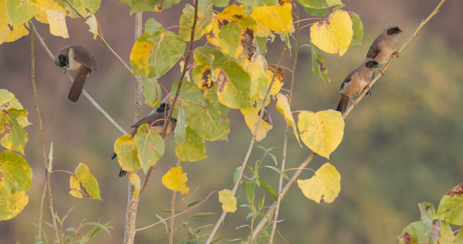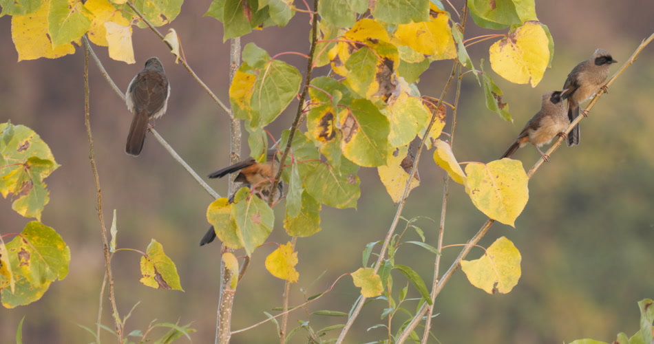 傍晚几只噪鹛鸟叽叽喳喳叫实拍