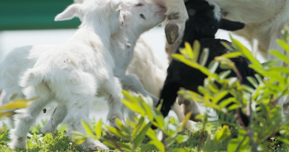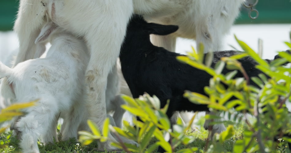 春天刚出生的小羊羔喝奶
