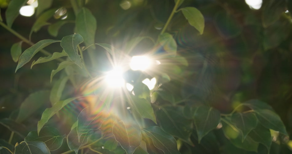 逆光星芒光斑炫光树叶碧绿电影感