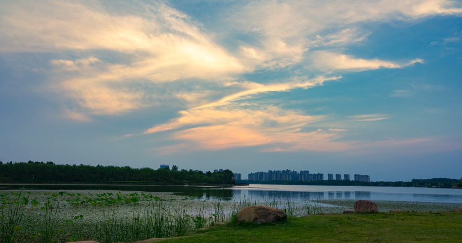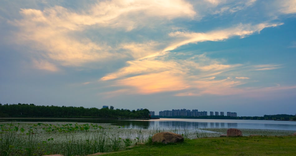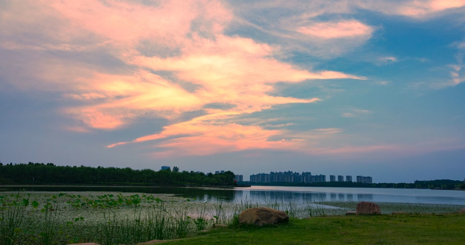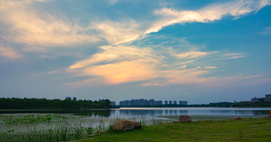 延时摄影静静的湖水飘荡的彩云还有摇拍