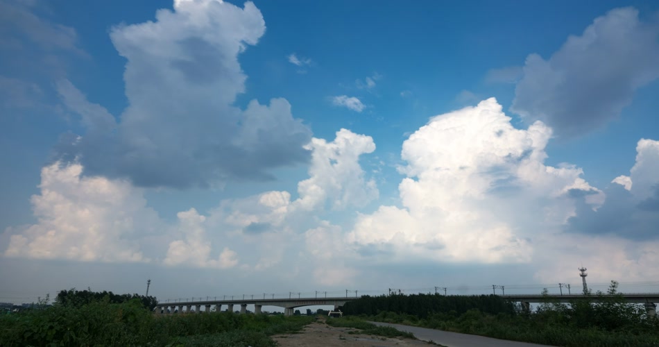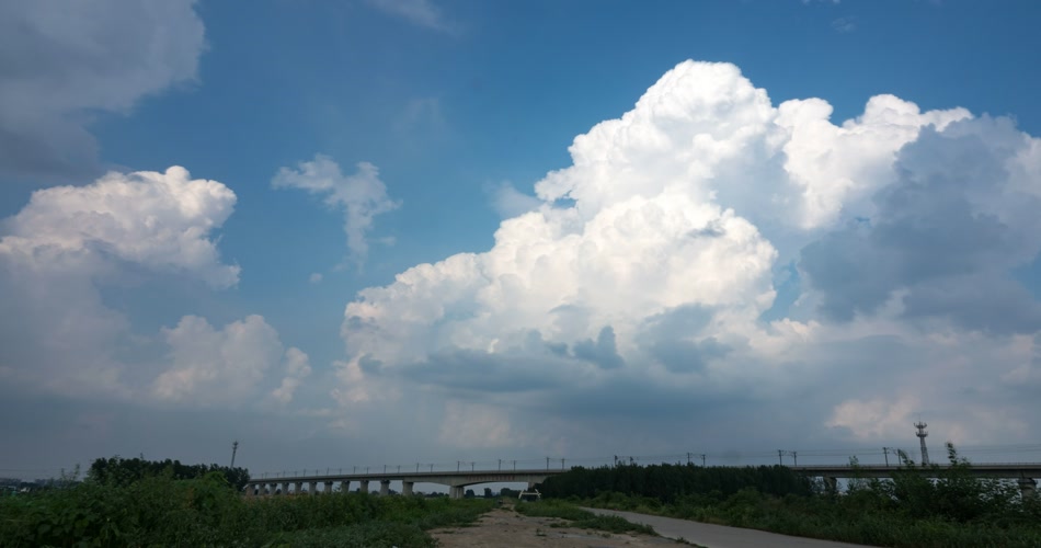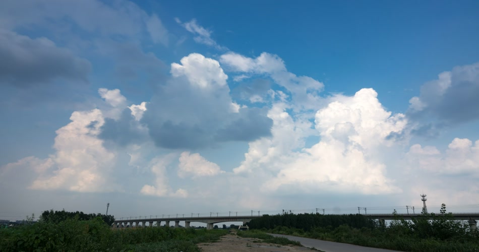 高铁桥边延时摄影非常壮观的蓝天白云涌动