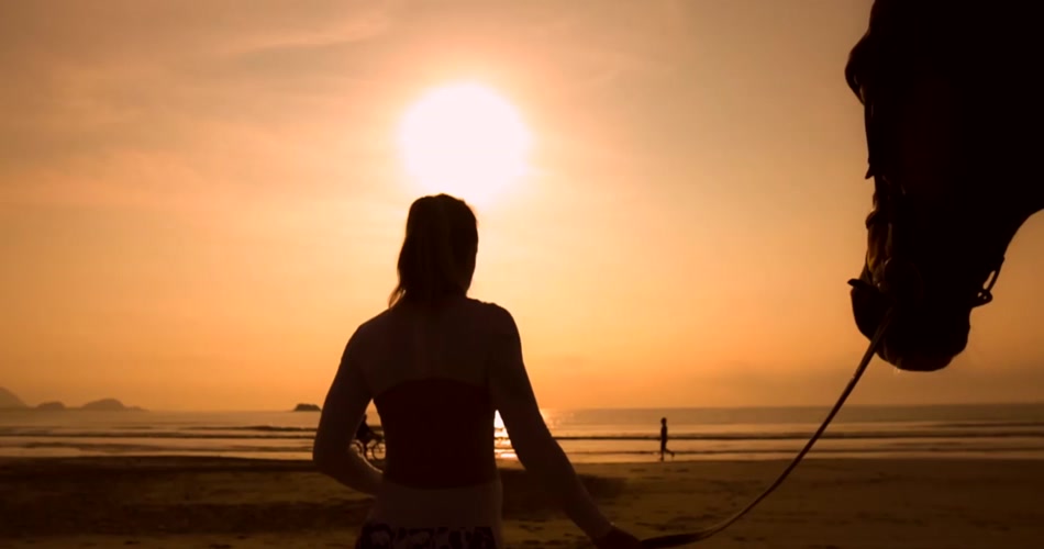 唯美浪漫夕阳下沙滩马术舞蹈黄昏夕阳晚霞视频素材
