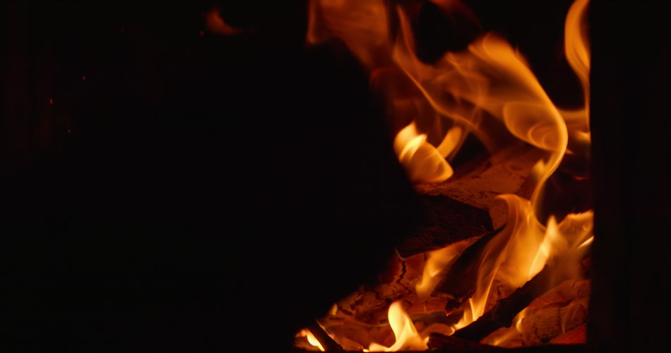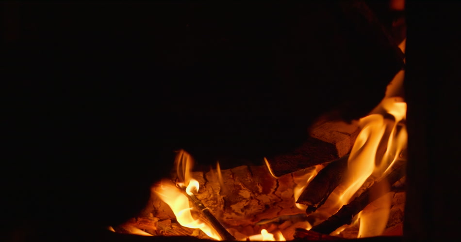 往篝火里添加木柴火焰升格慢镜头