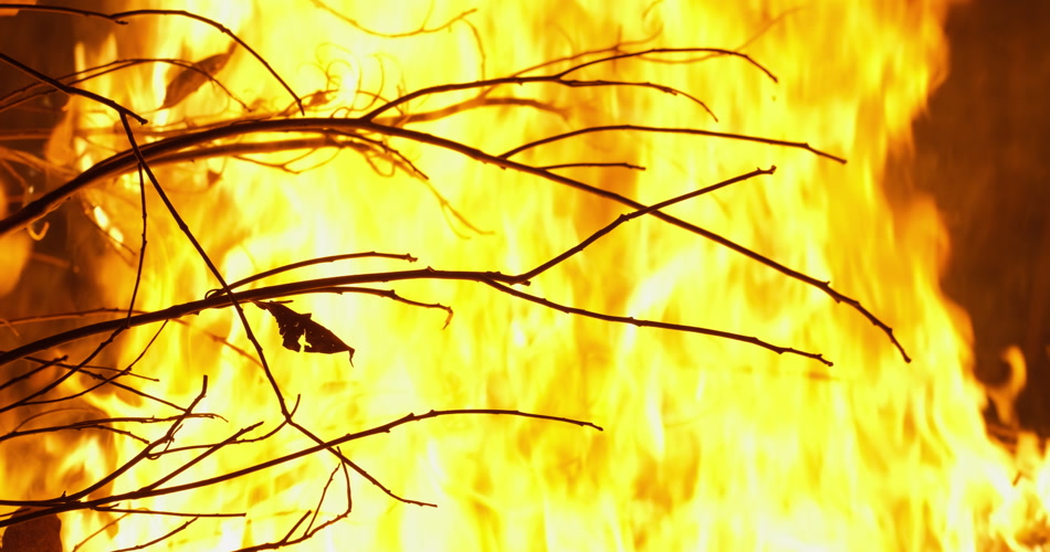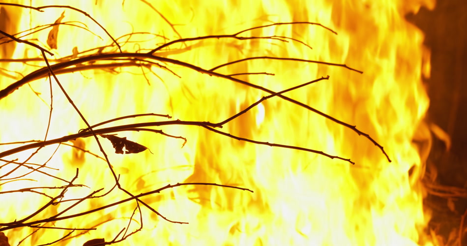 燃烧的篝火枯树枝火焰木炭