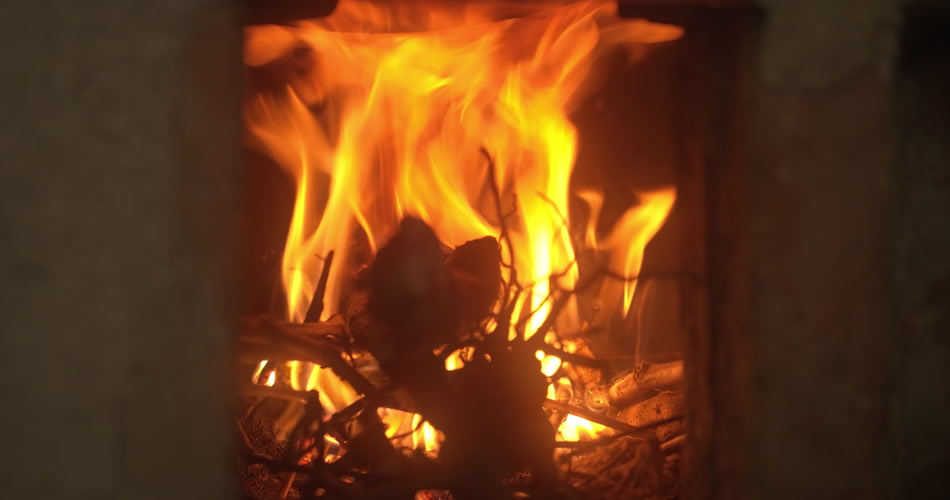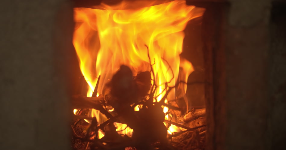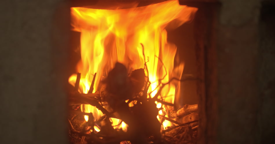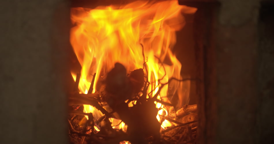 农村大灶土灶台木炭篝火燃烧火焰