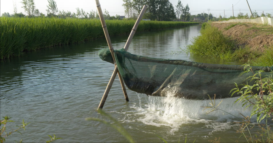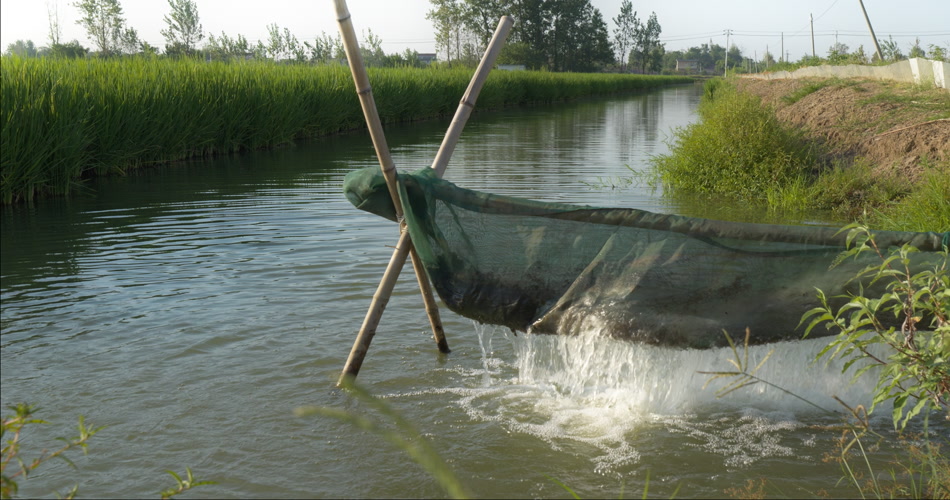 夏天水稻田野浇水灌溉滋润
