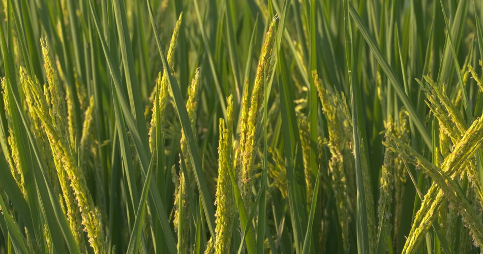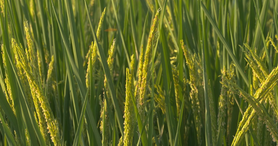 夕阳下金色的水稻穗稻花大米