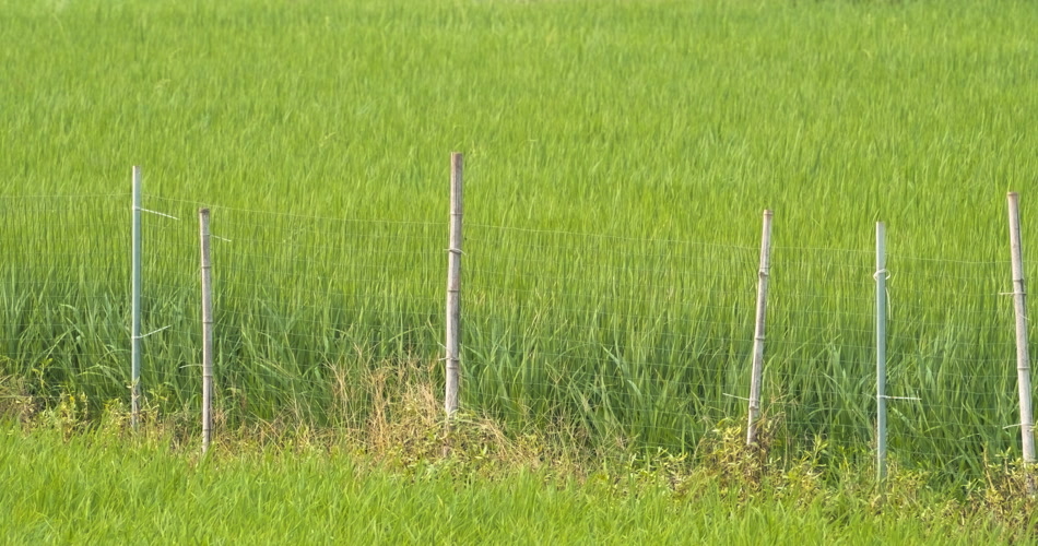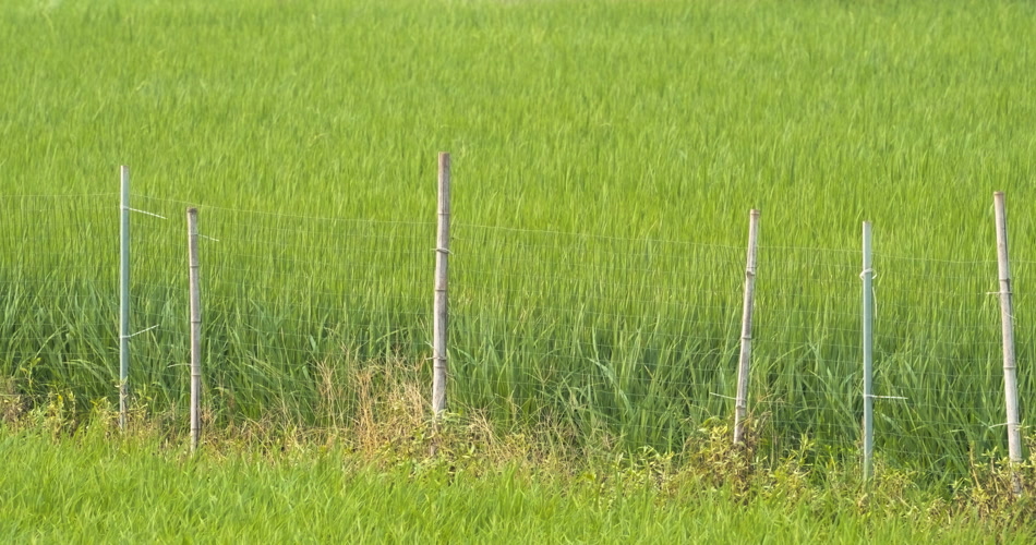 水稻粮食绿草田野栅栏微风