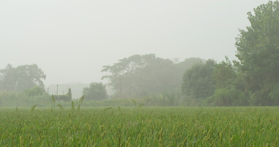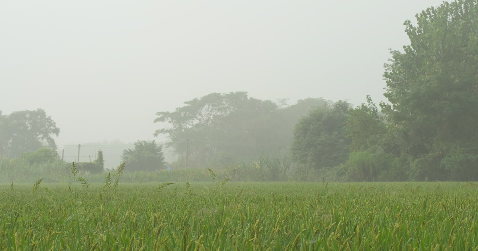 清晨农村蛙鸣鸟叫薄雾稻田野