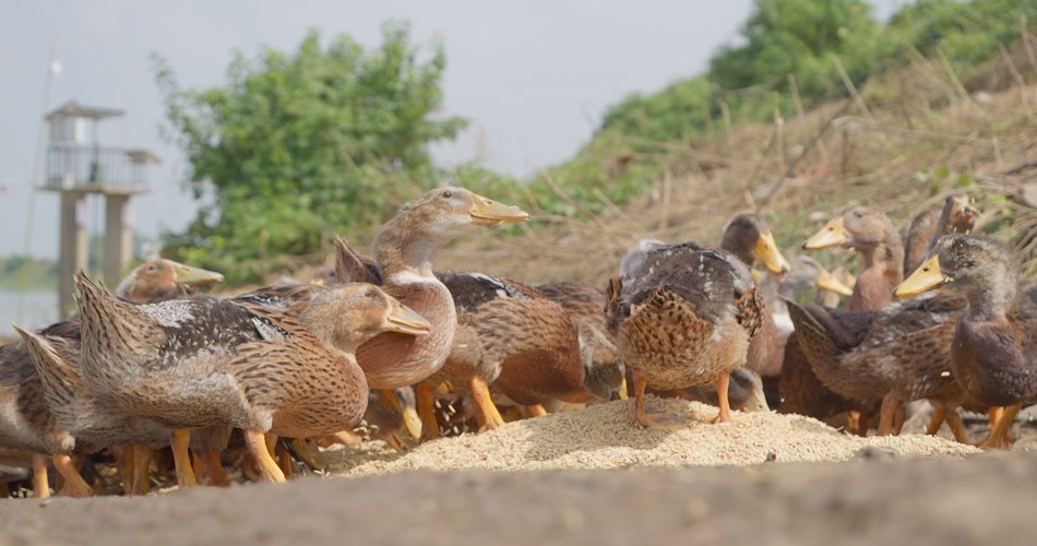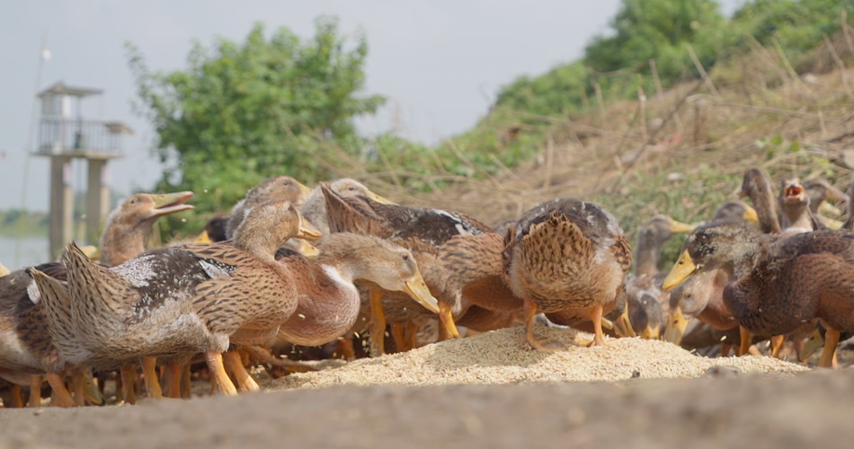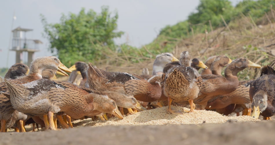 鸭子吃水稻谷米慢镜头慢动作升格