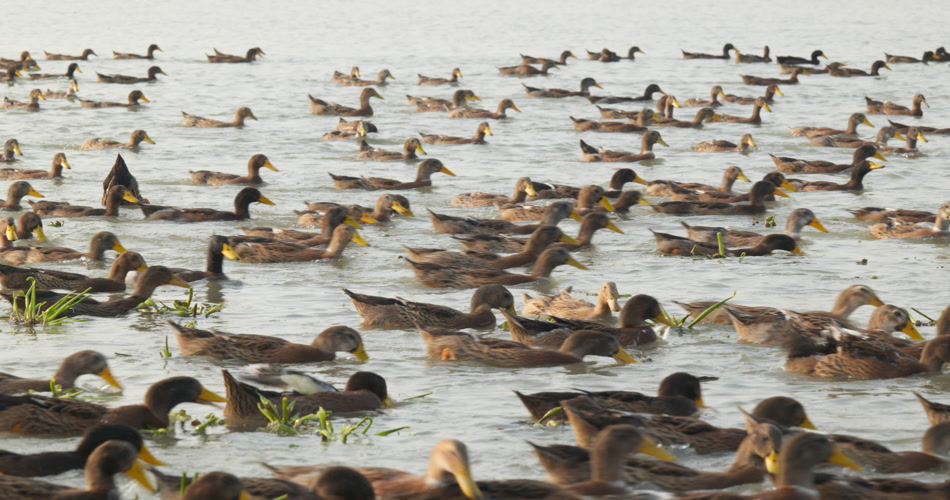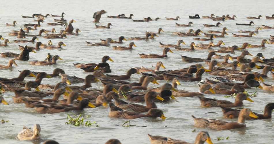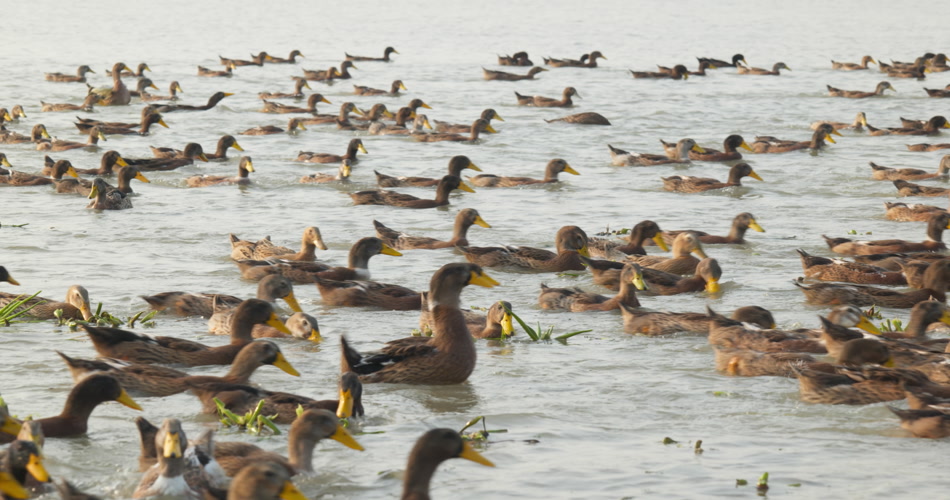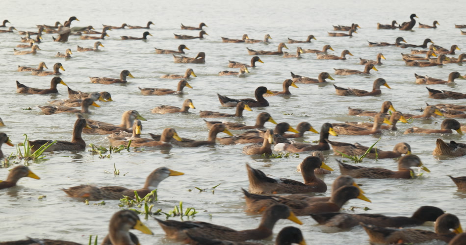 乡村天然河道散养土鸭子老鸭