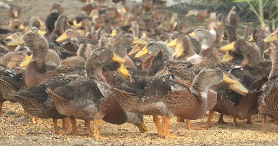 天然喂养散养鸭子池水稻米