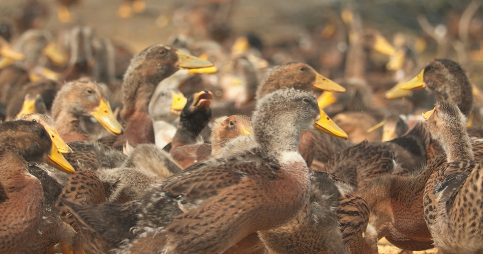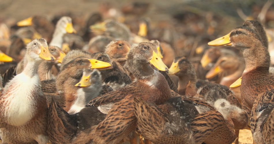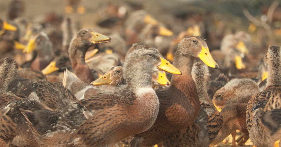 天然散养鸭子喂食水稻米稻谷