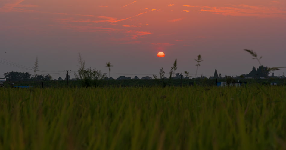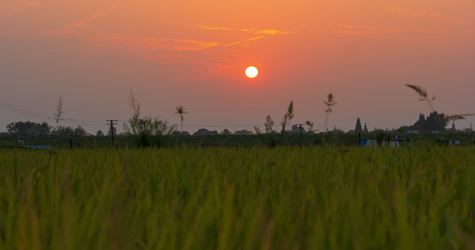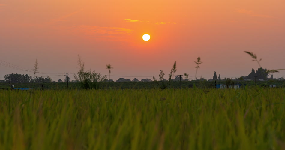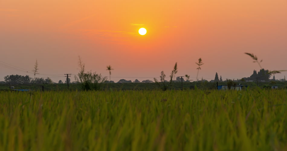 农村太阳日落西山水稻田野