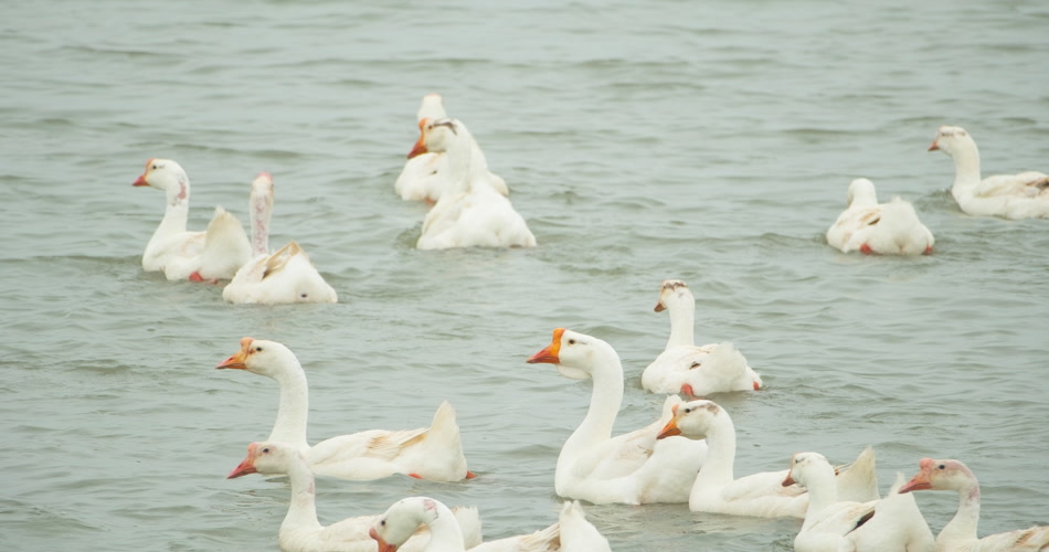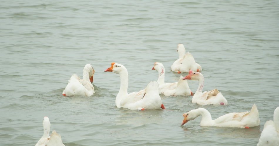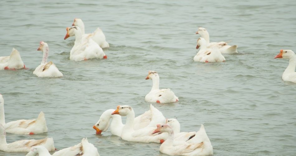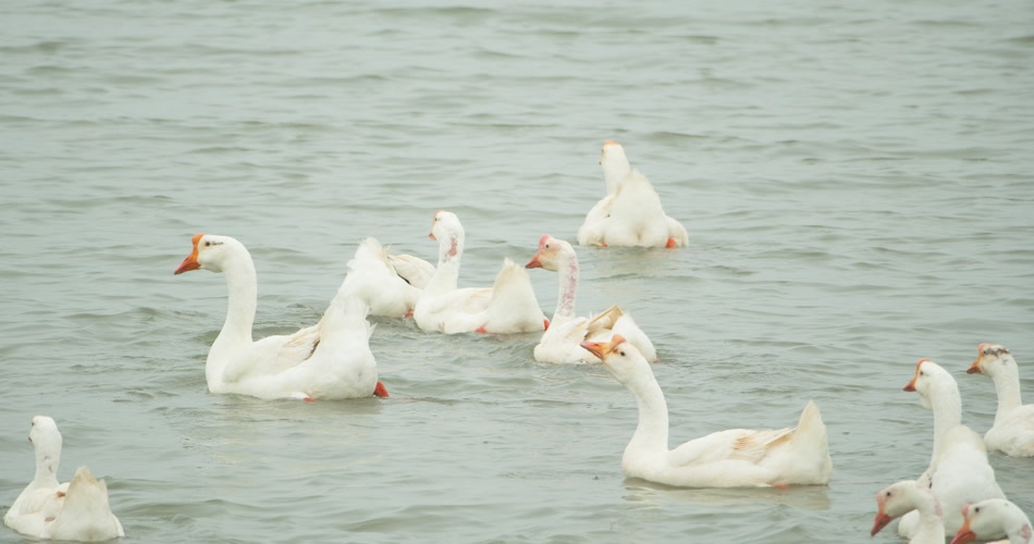 天然河道小河水散养大鹅土鹅