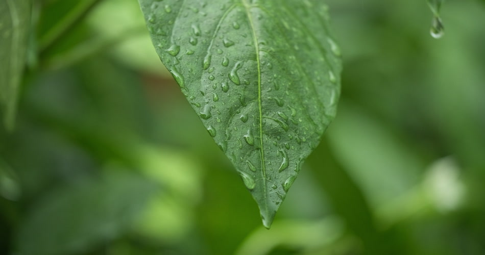 阴天下雨滴水滴树叶微距特写