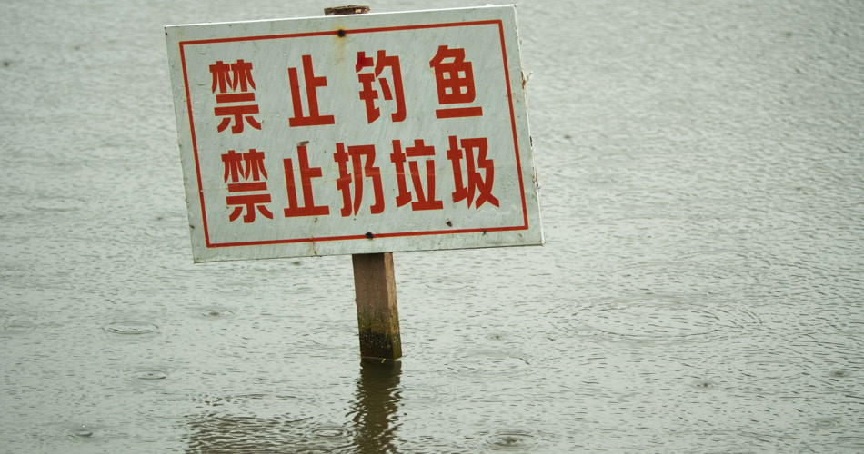 下雨水滴标语禁止钓鱼扔垃圾