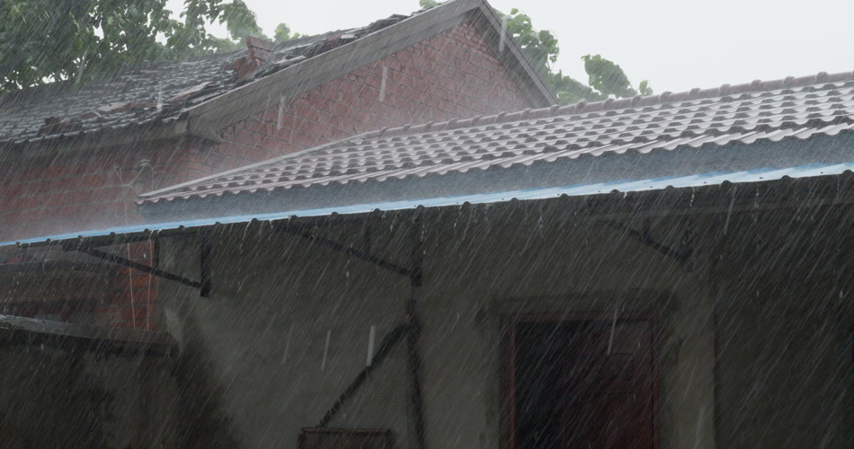 平房瓦片屋檐台风暴风雨倾盆大雨