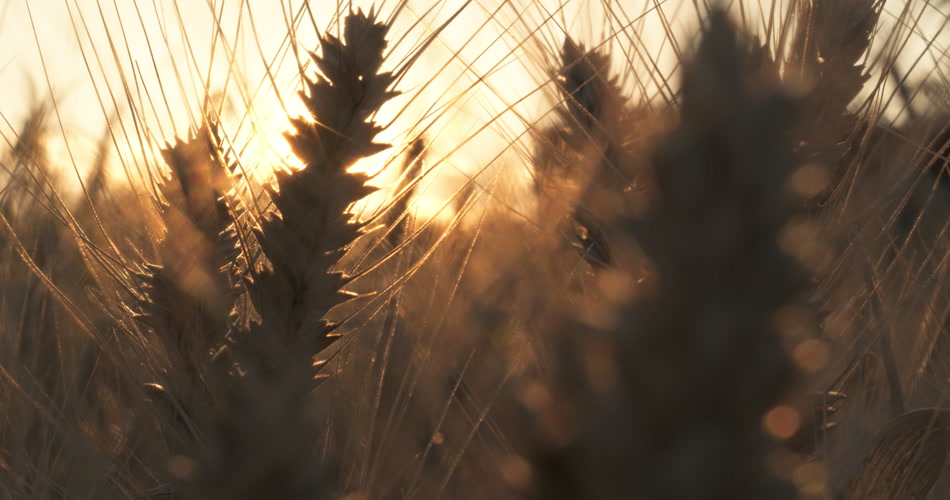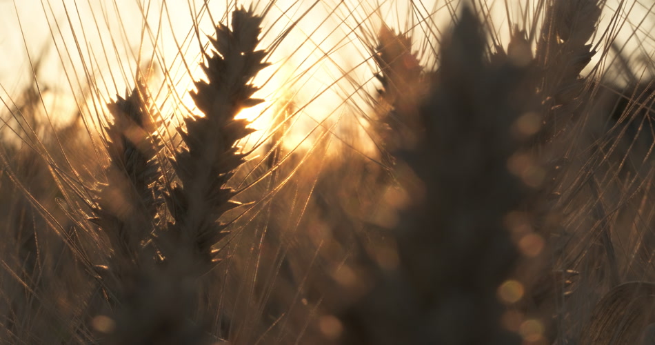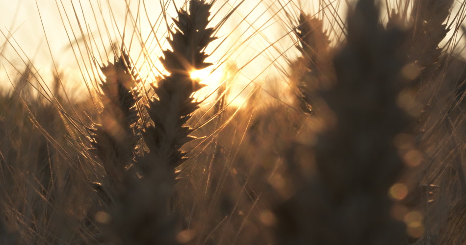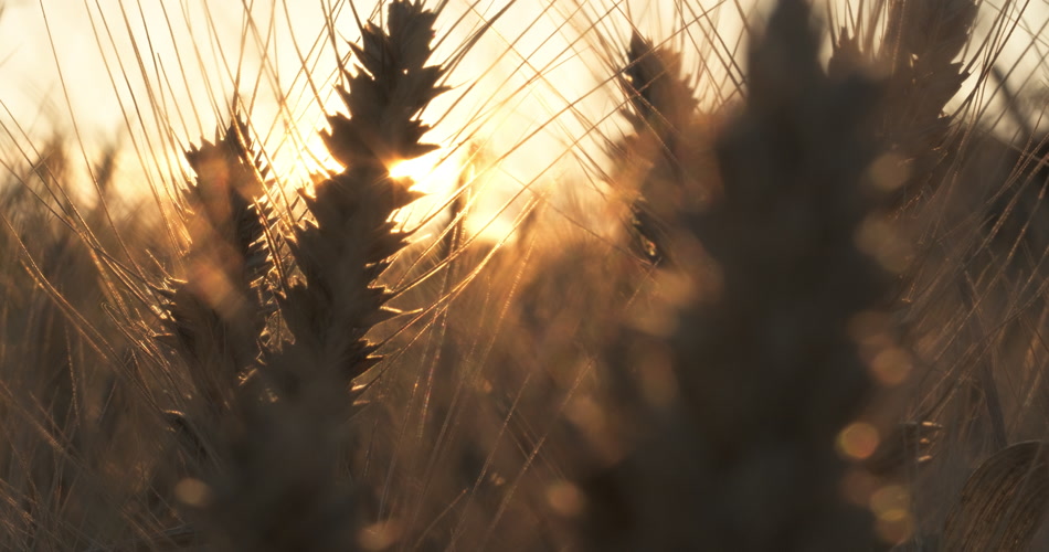 夕阳下田野里金色小麦穗麦芒