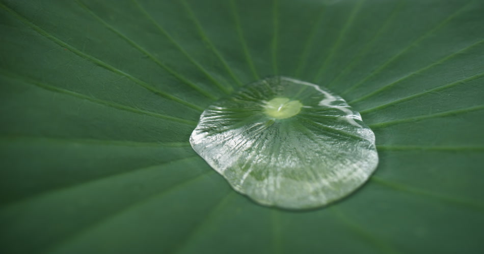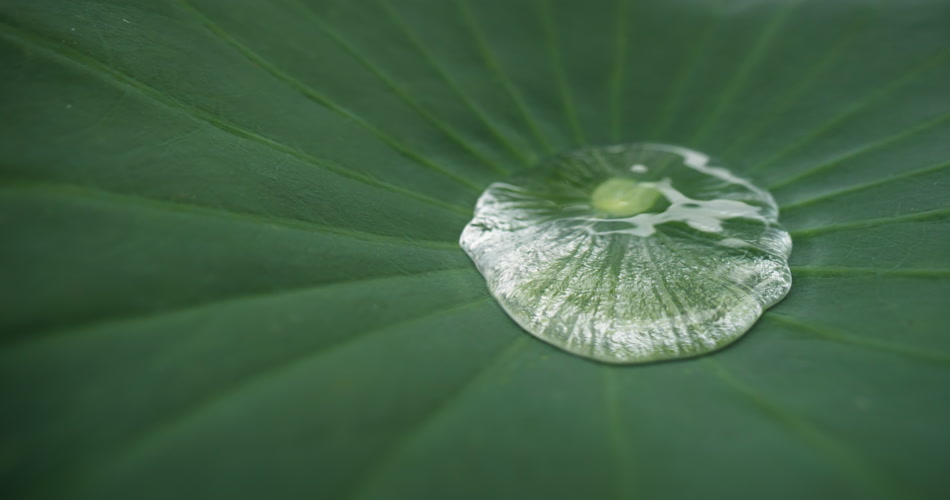 荷叶上的水滴露珠慢镜头升格