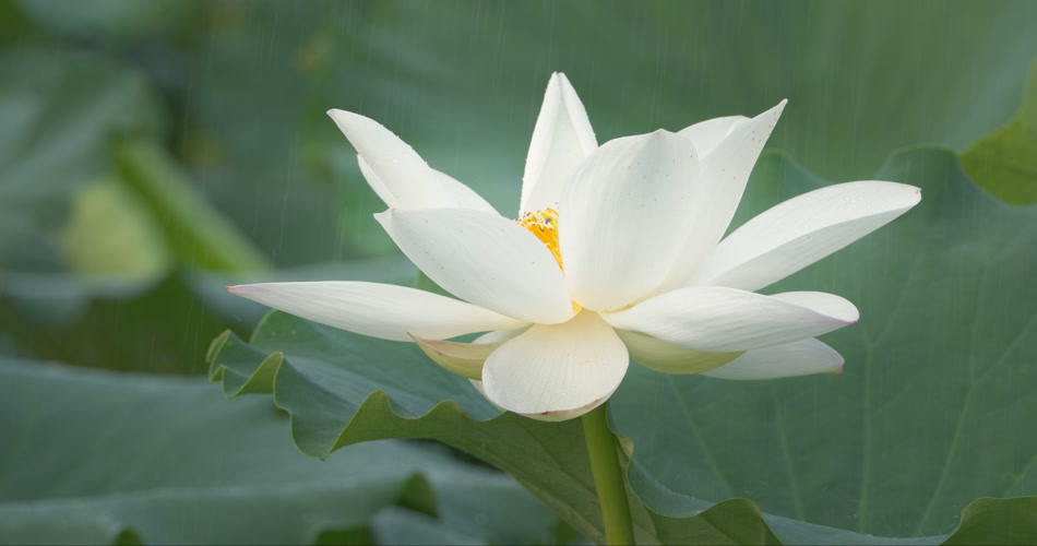 荷花荷叶池塘阴天下雨蜜蜂