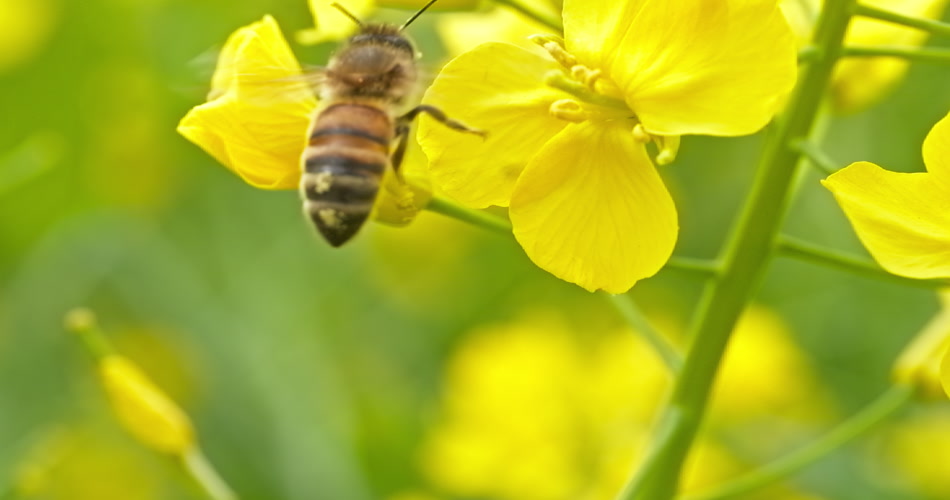 蜜蜂油菜花采蜜慢镜头慢动作升格
