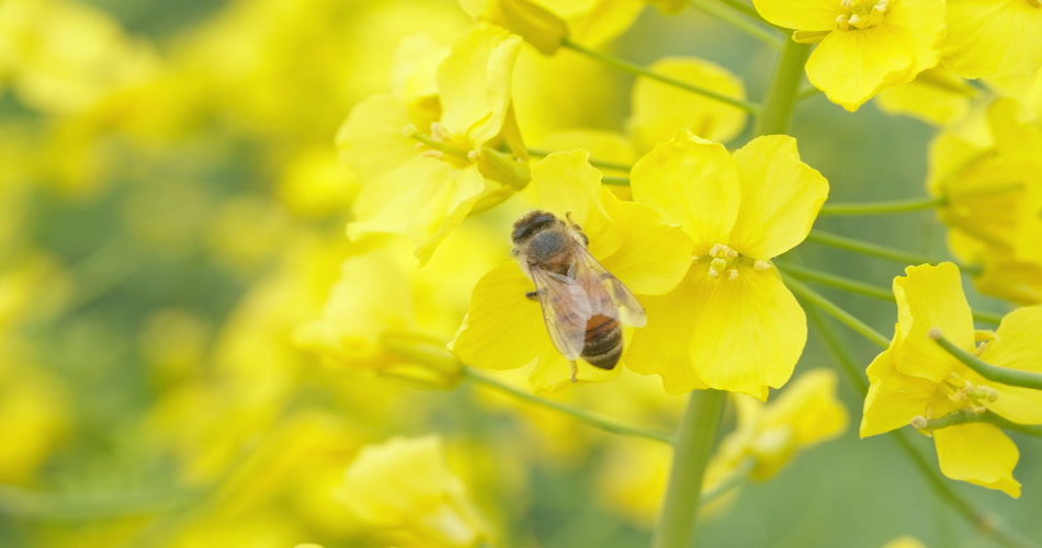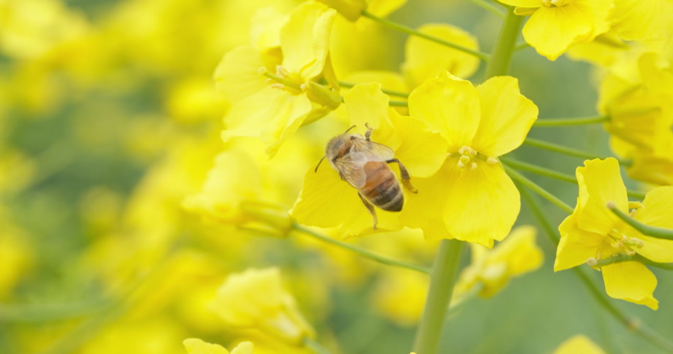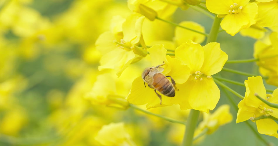 蜜蜂油菜花采蜜慢镜头慢动作升格