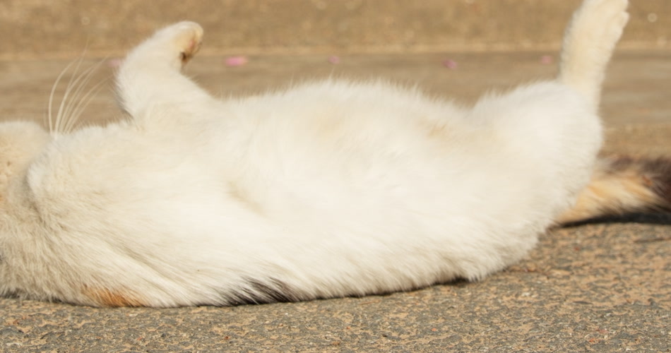 春天清晨流浪猫在地上打滚