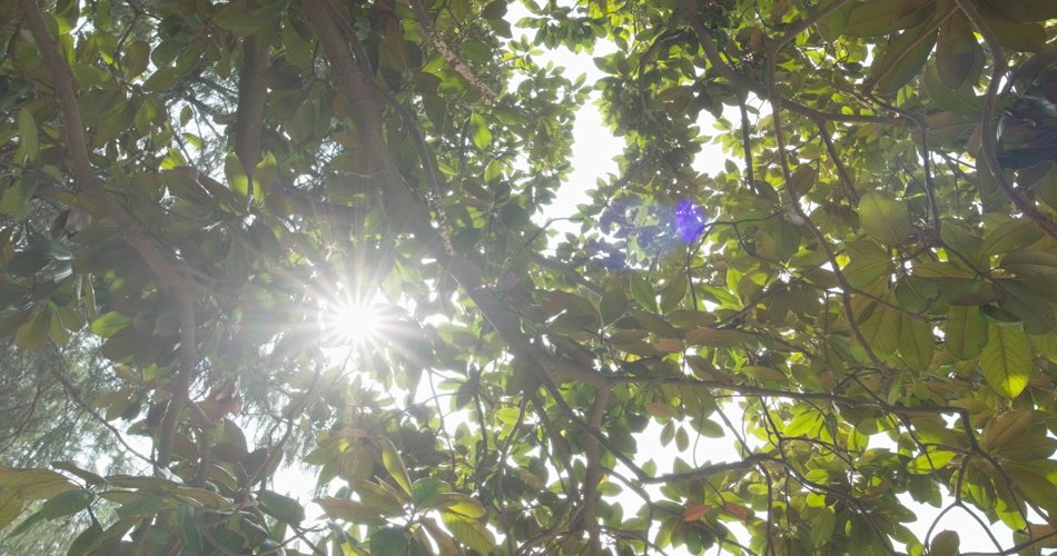 夏天森林树叶玉兰花阳光星芒