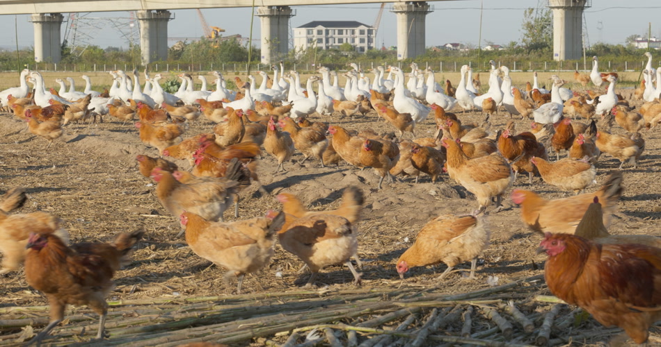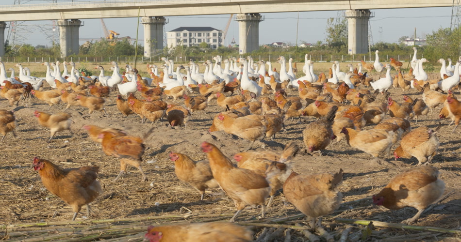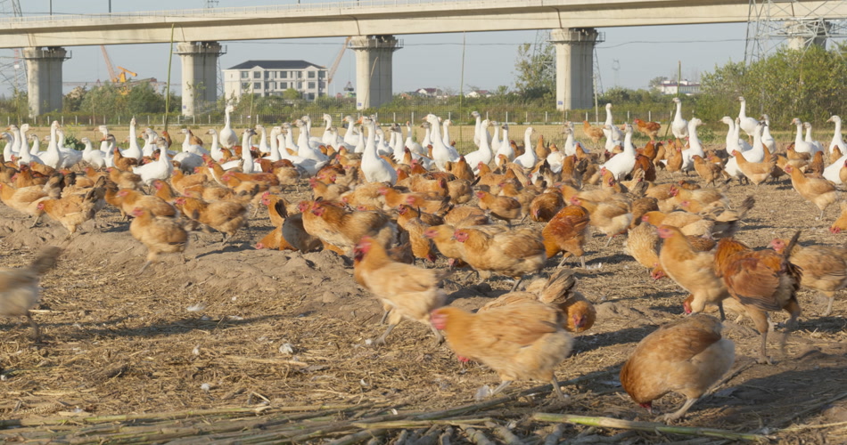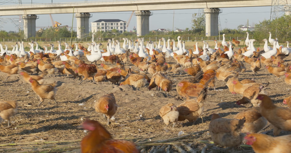 农村乡村农民饲养的鸡鸭鹅