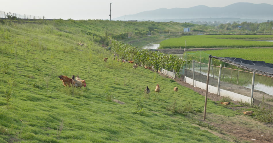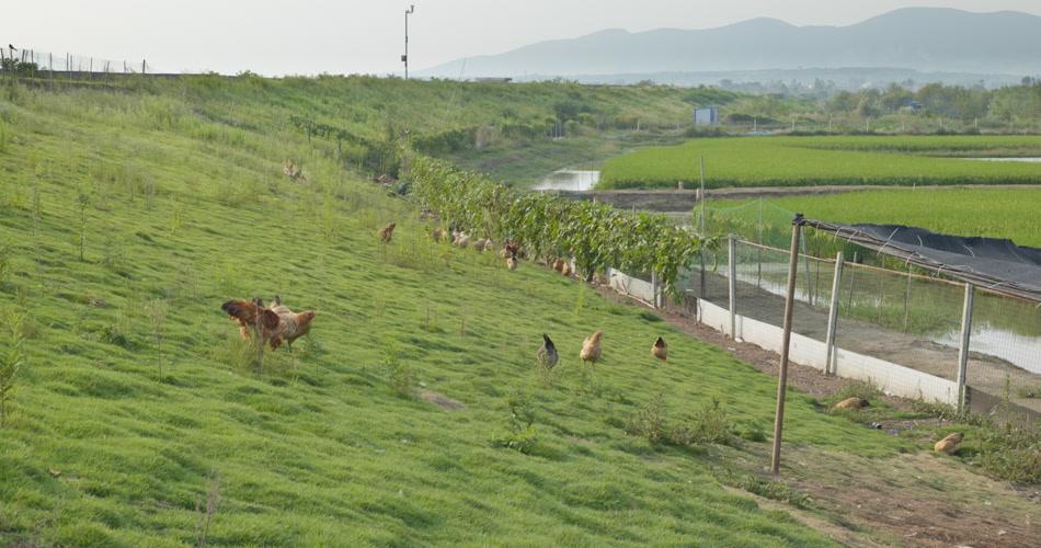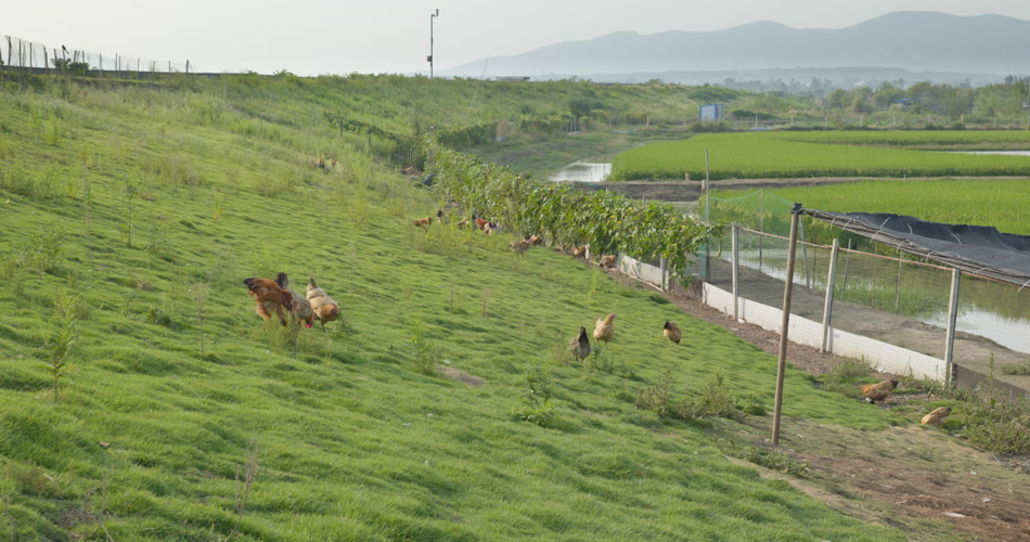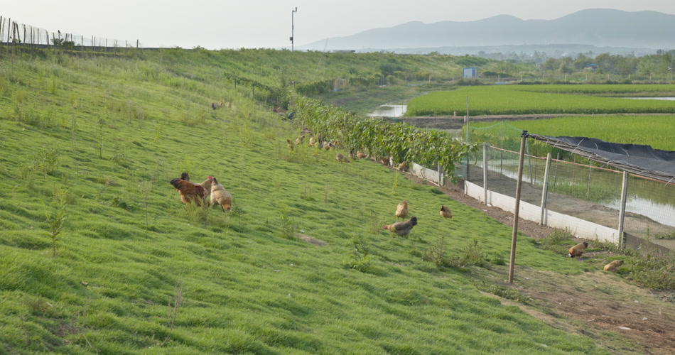 农村散养土鸡柴鸡远山稻田