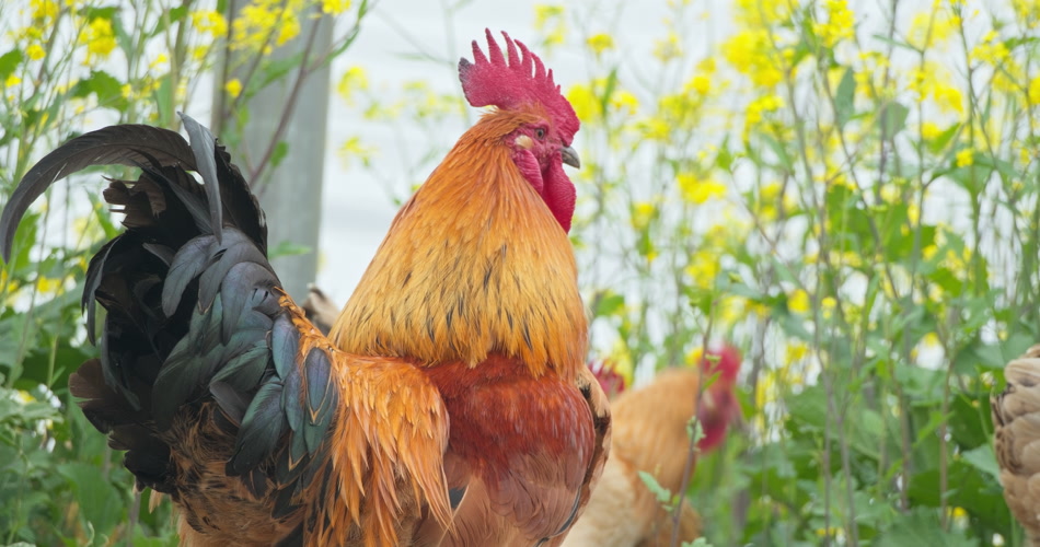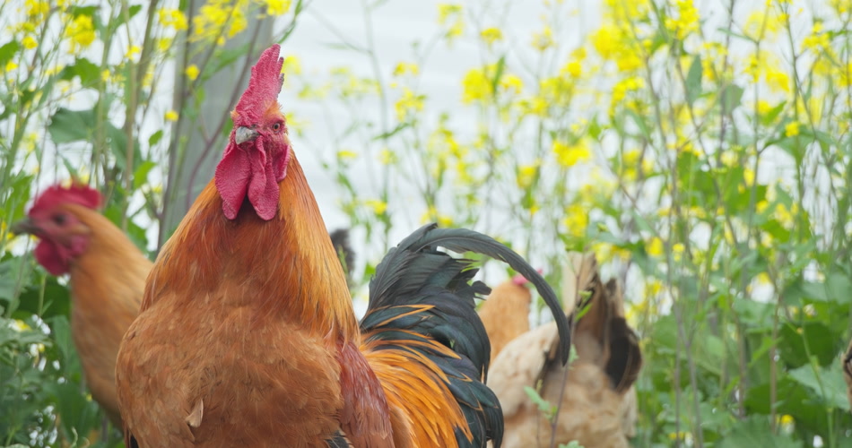 农村散养美丽的大公鸡鸡冠