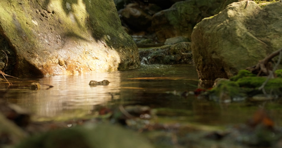 春天阳光照射泉水清澈小溪