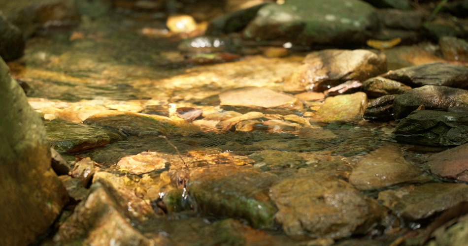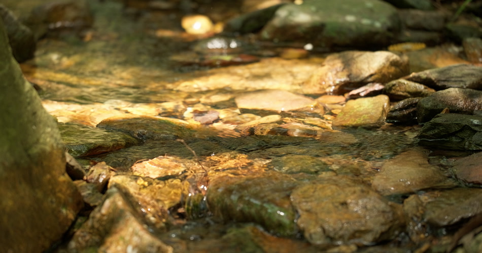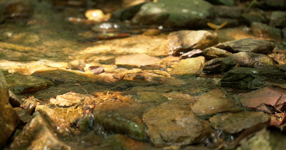 春天清澈湍急山泉水小溪阳光