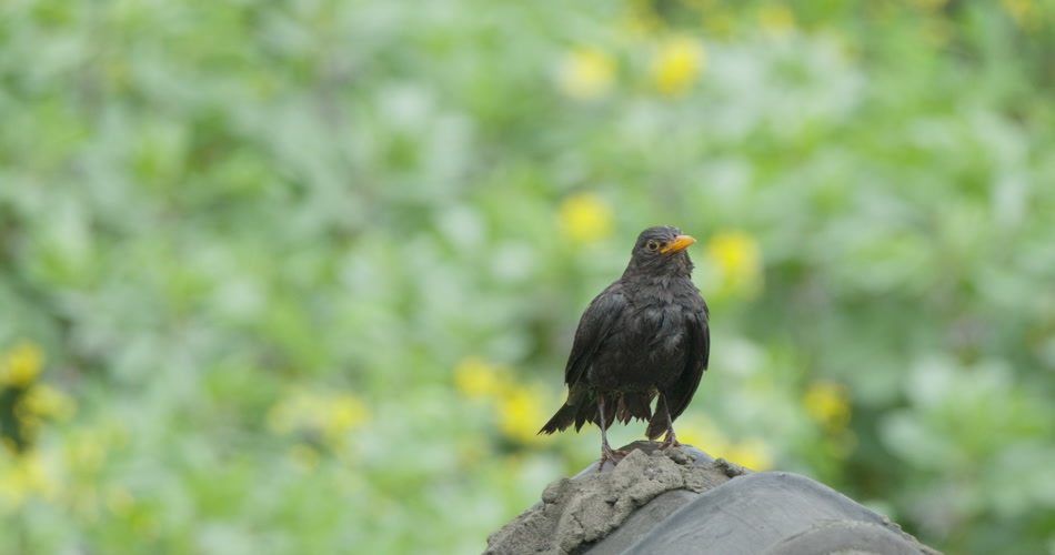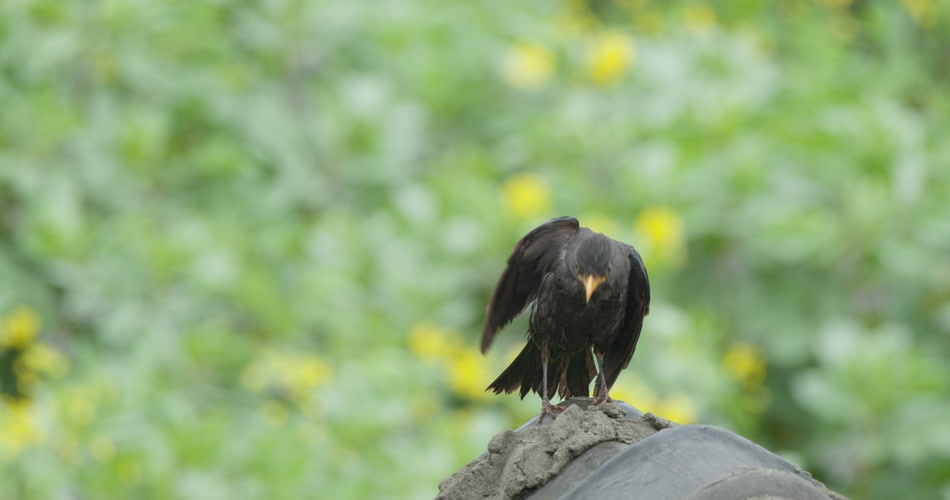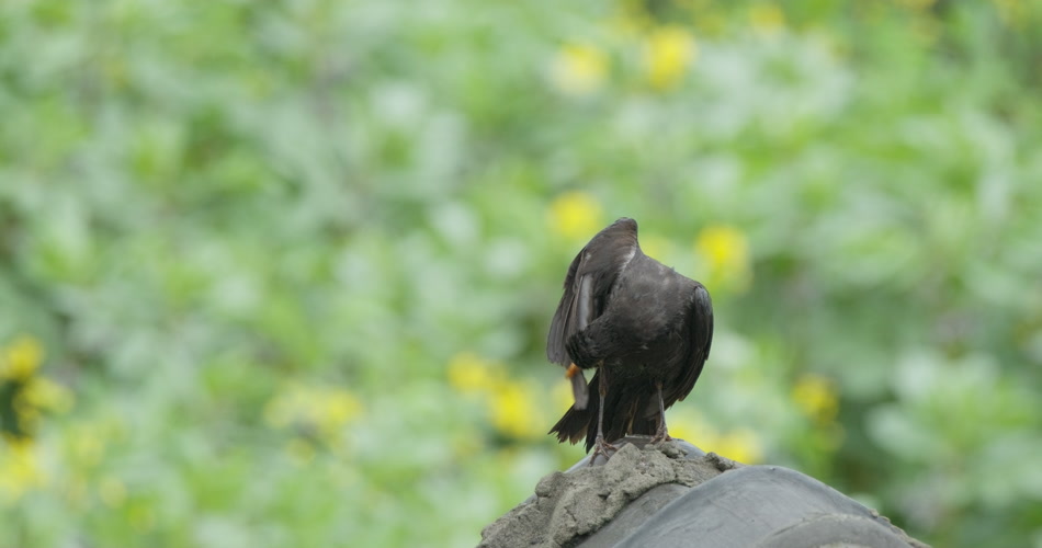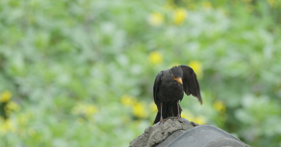 雨后乌鸫打理羽毛升格慢镜头