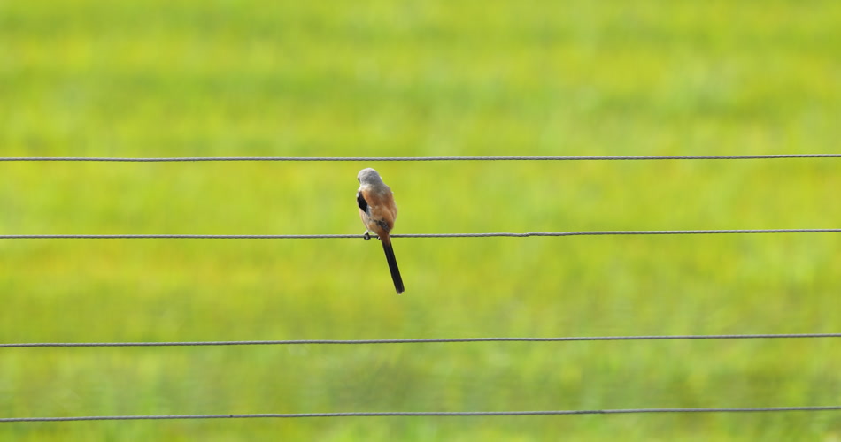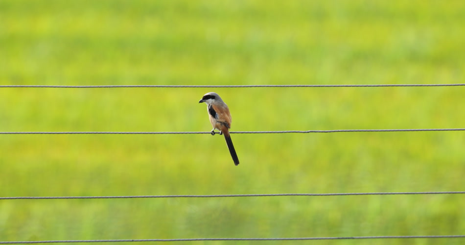 夏天水稻田野小鸟棕背伯劳