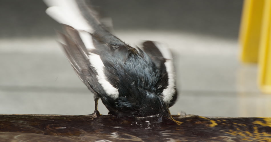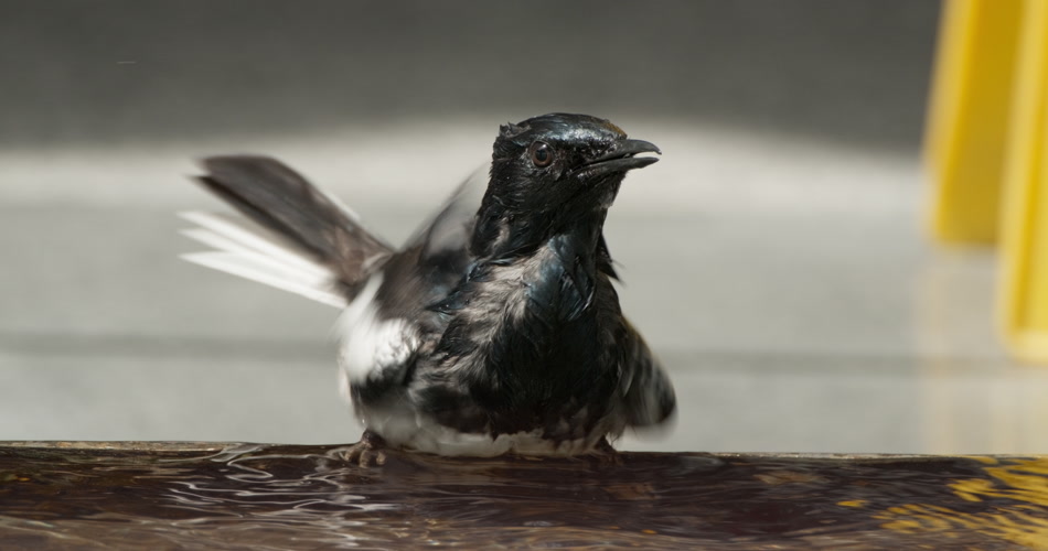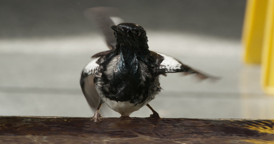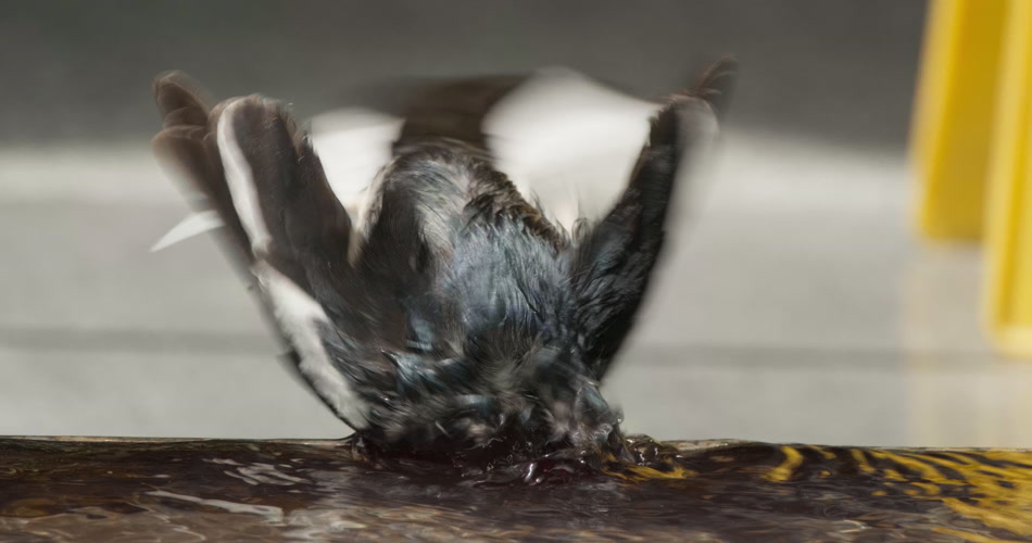 喜鹊鸟类洗澡升格慢镜头慢动作