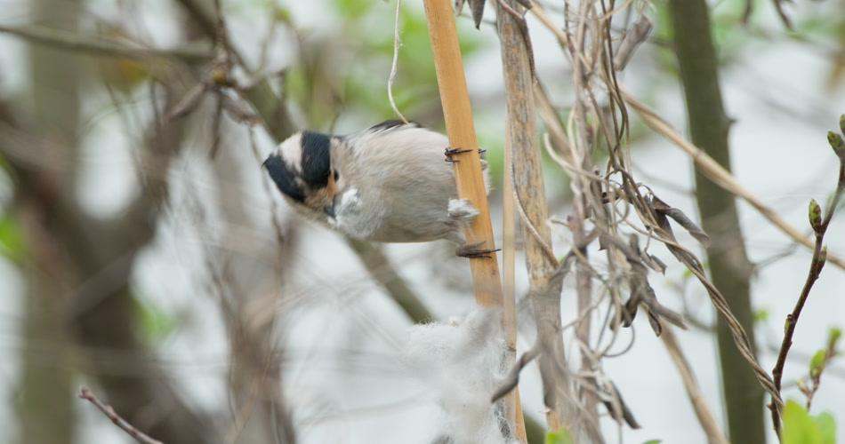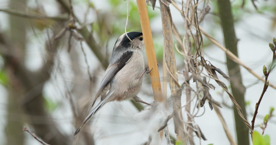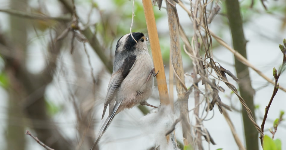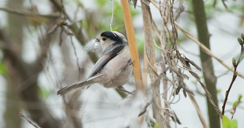秋天小鸟采集棉花筑巢银喉长尾山雀