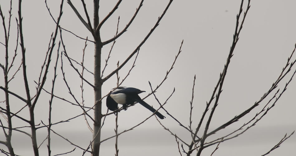 秋天农村树枝头小鸟喜鹊鸣叫