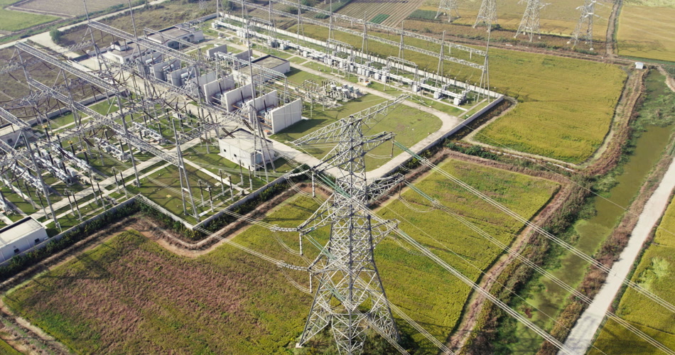 农村国家电网高压电塔航拍