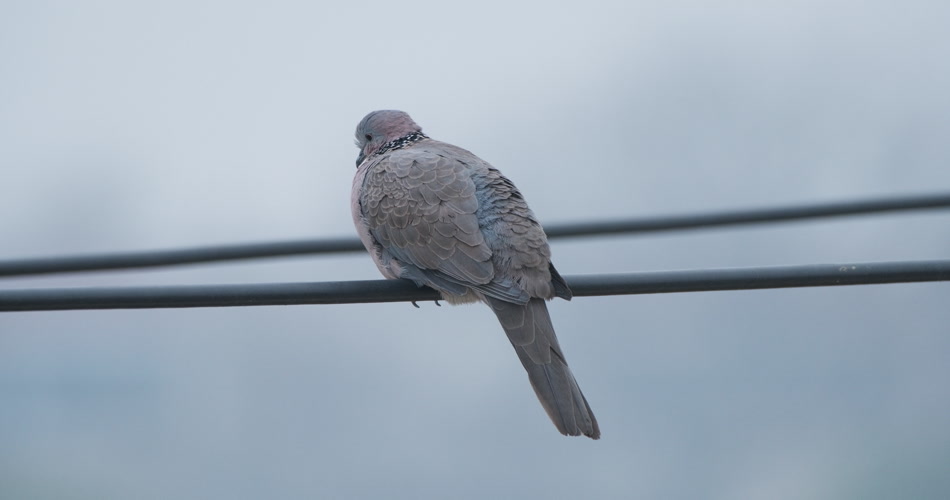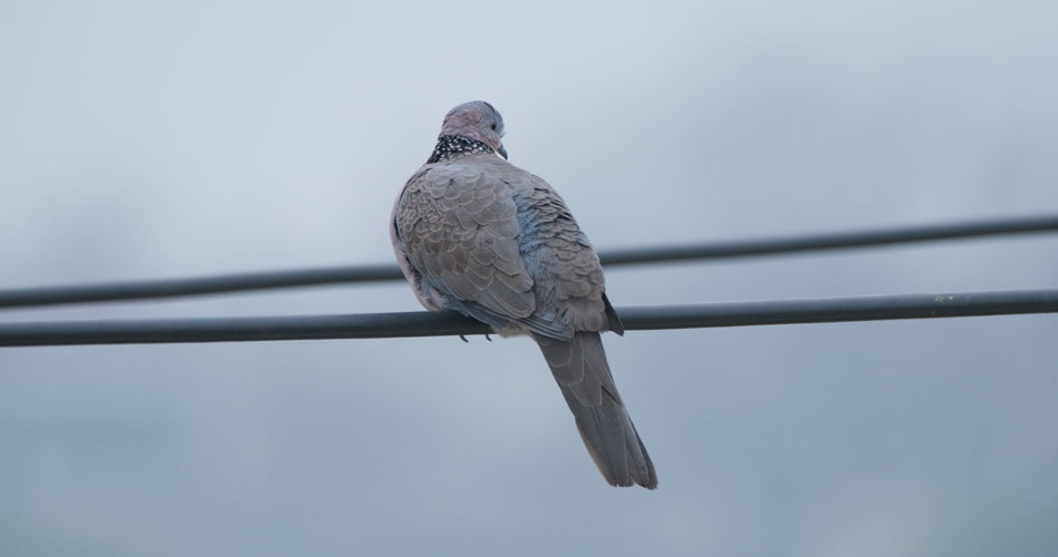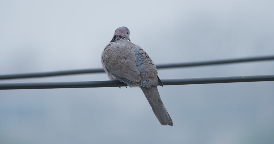冬天清晨高压线上小鸟斑鸠