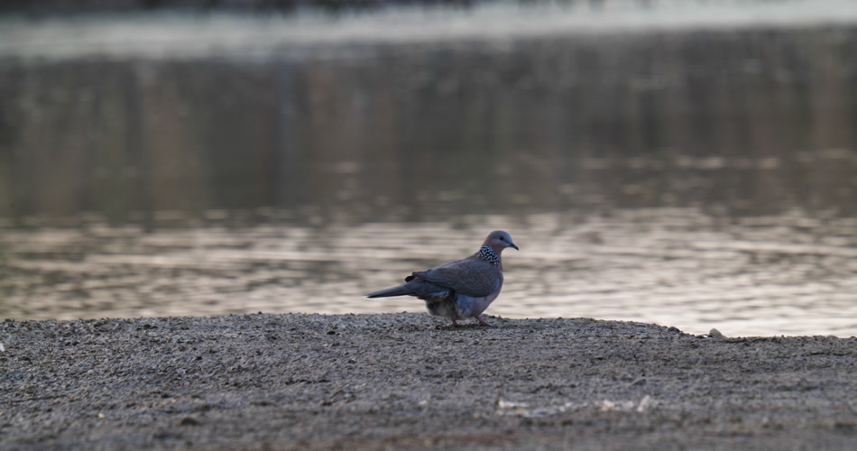 傍晚黄昏湿地泥滩小鸟斑鸠