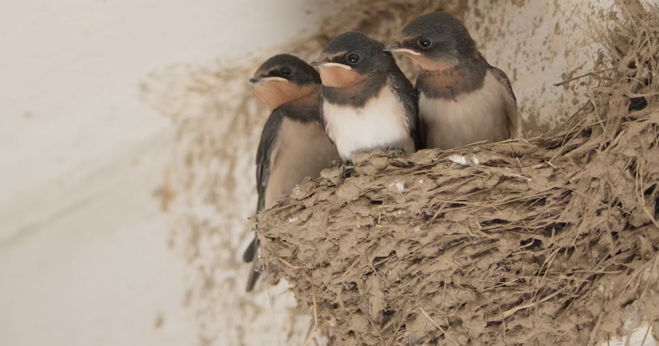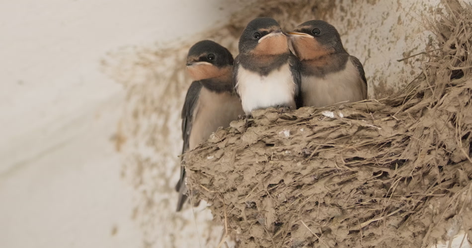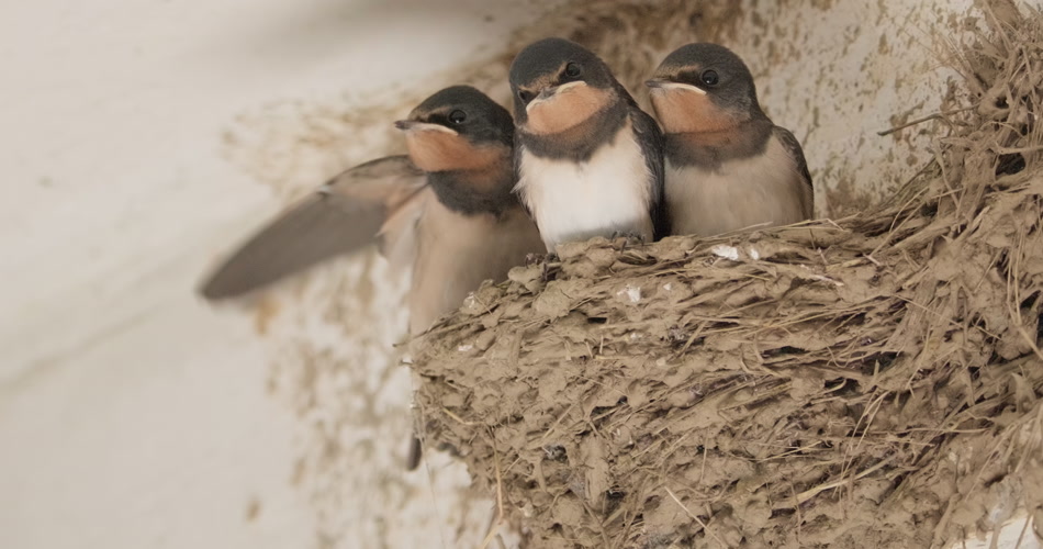 房檐屋顶鸟巢燕窝家燕子雏鸟