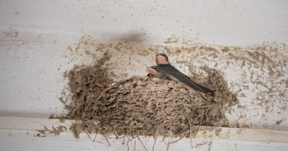 房檐屋顶鸟巢燕窝家燕子雏鸟