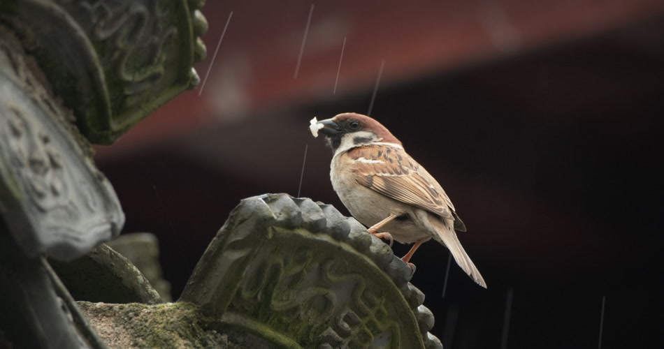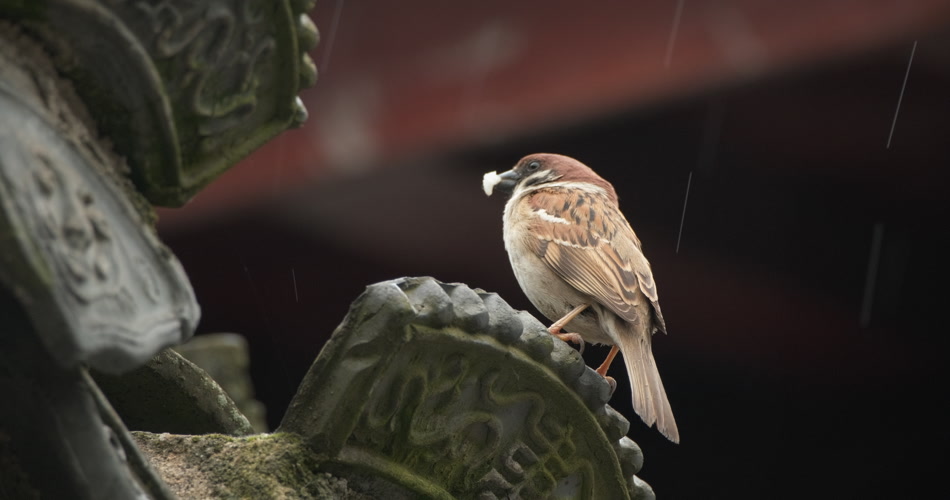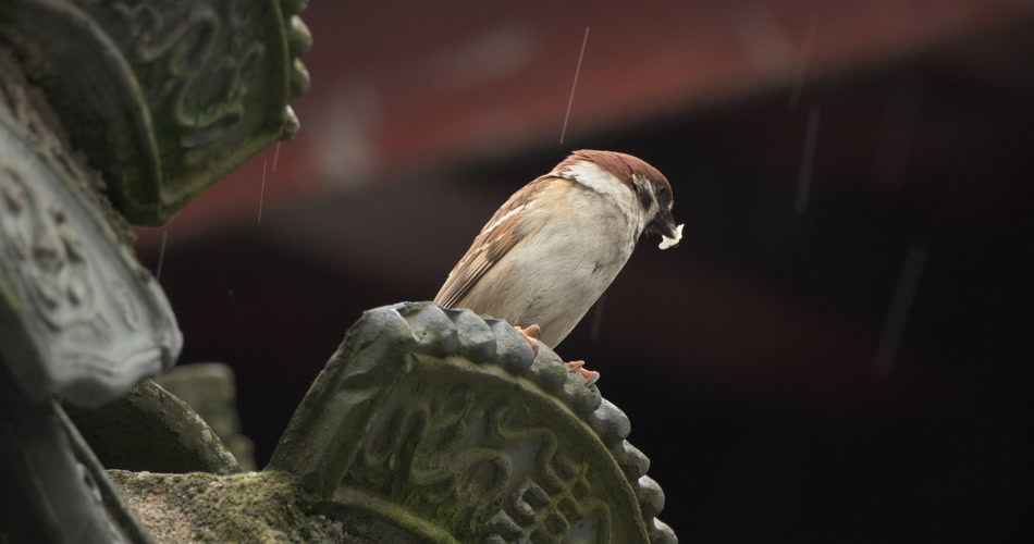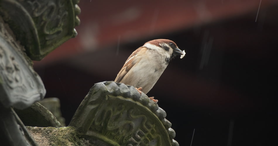 春天下雨中屋檐瓦片麻雀小鸟是由设计师原创摄影师LPZZ在2023/11/16 14:32:33成功上传. 浏览本次作品的您可能还对