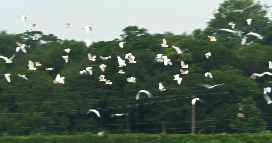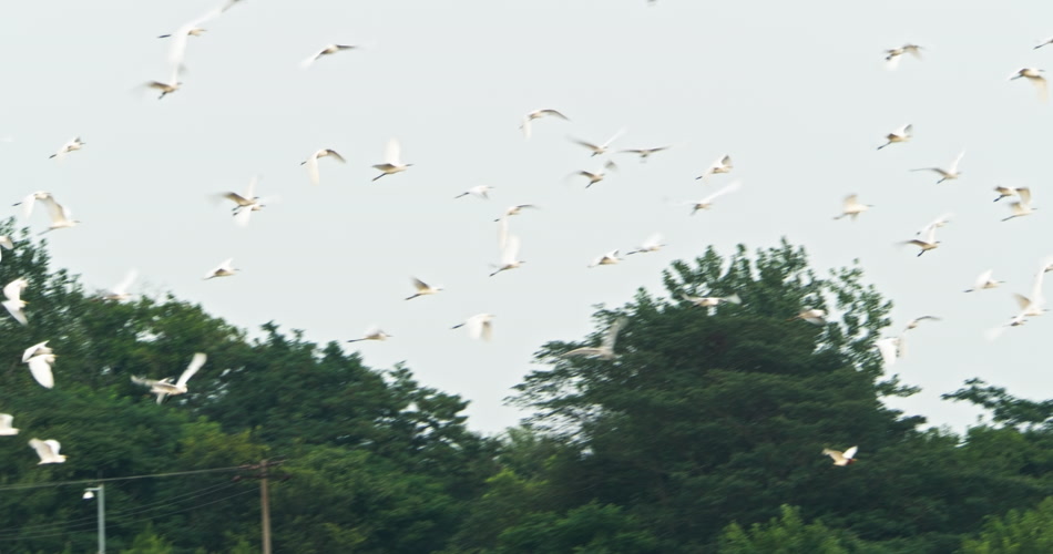 天空一群野生白鹭自由飞翔翱翔