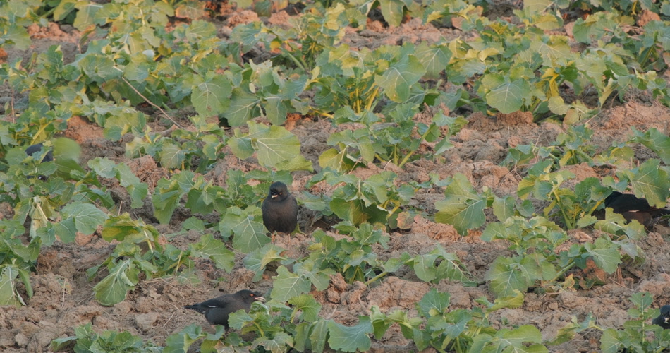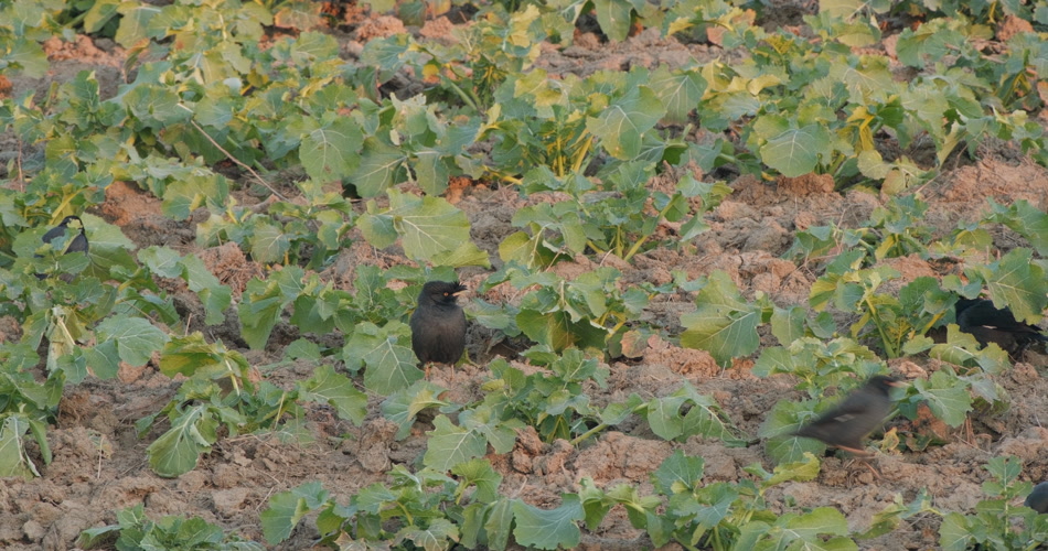 八哥鸟乌鸦偷吃农民种植蔬菜