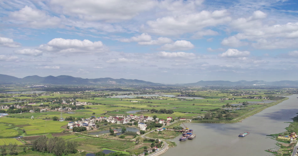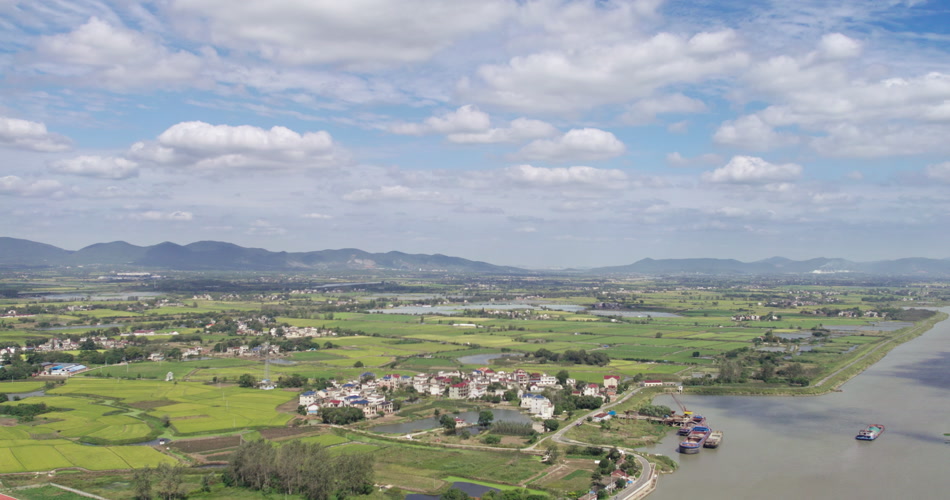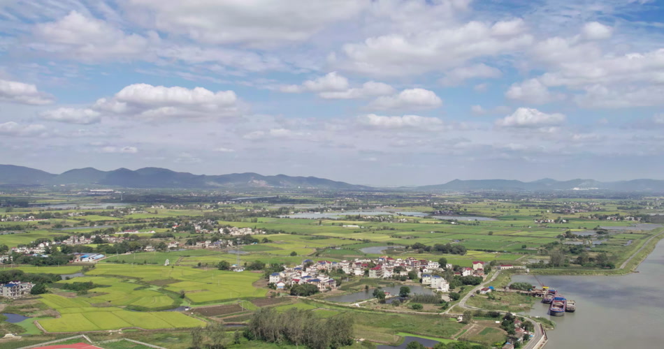 平原丘陵乡村田野山脉河流航拍