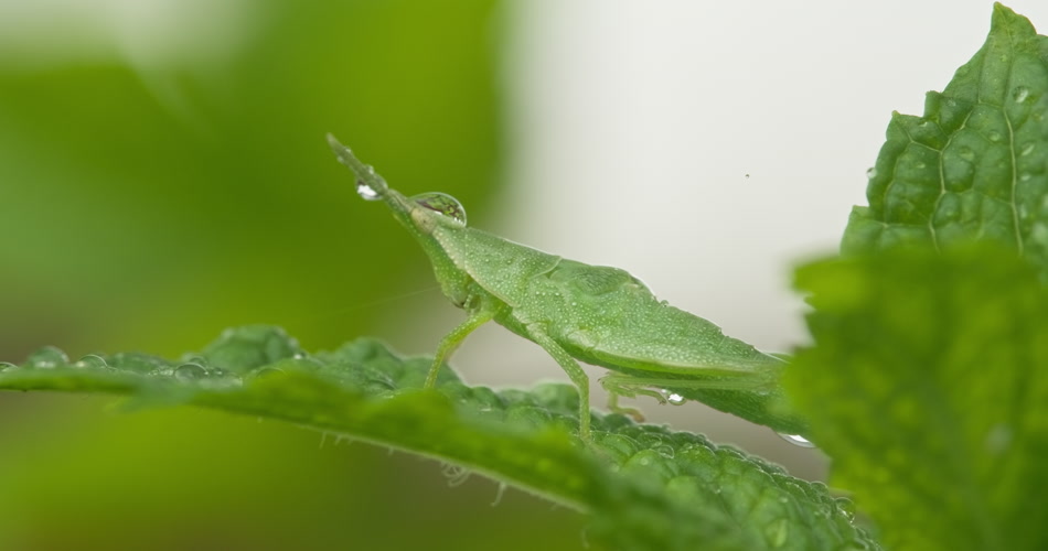 春天下雨薄荷叶短额负蝗虫